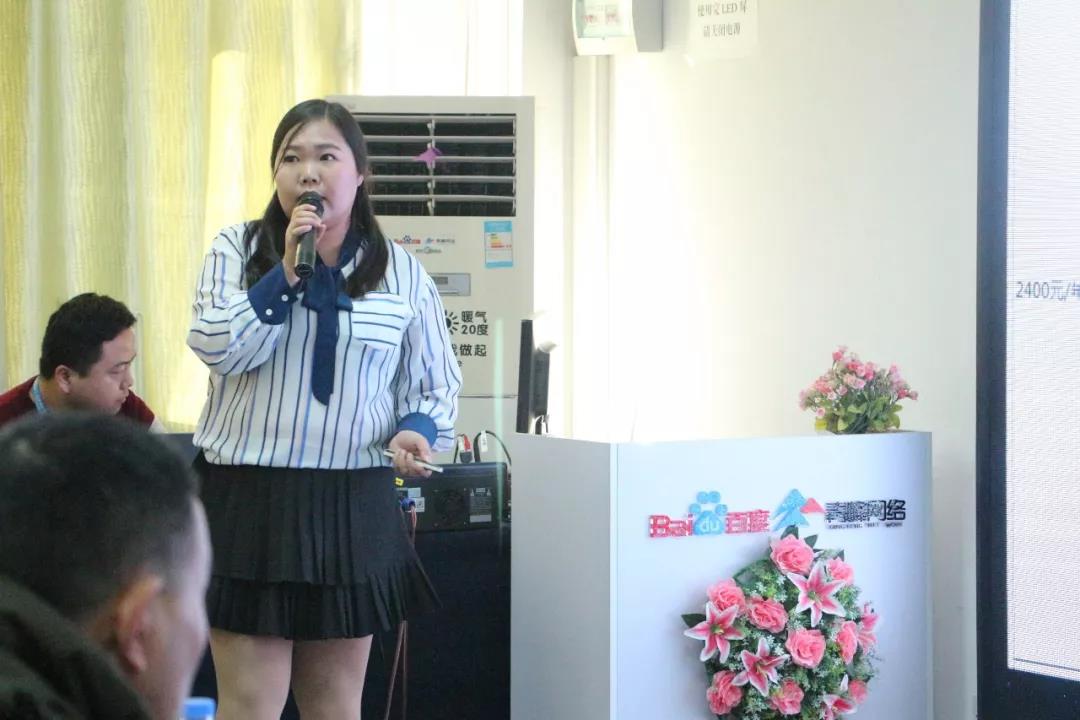 會(huì)議正式開始,百度推廣市場(chǎng)總監(jiān)韓曉雯女士為大家頒布了現(xiàn)場(chǎng)的簽約政策!政策很給力,非常吸引人!