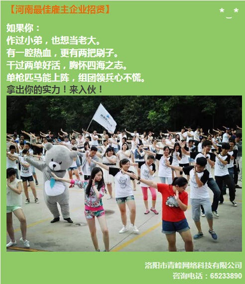 河南很好雇主企業——洛陽青峰網絡招聘啦!