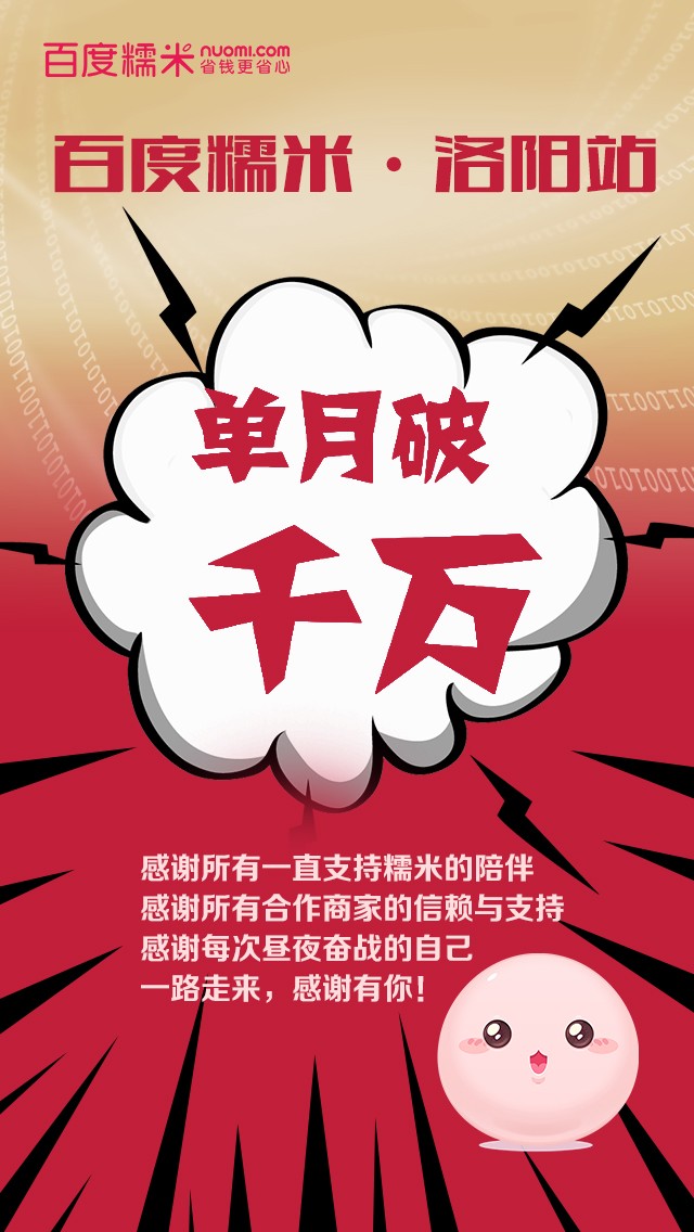 百度糯米洛陽站29天流水破千萬!感謝有你!
